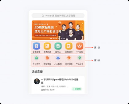 在設(shè)計(jì)過程中,如果沒有對(duì)功能層級(jí)進(jìn)行劃分,一股腦地將所有功能入口平鋪的話,就需要用戶花費(fèi)大量的時(shí)間和精力來查找需要的功能,無疑是一場(chǎng)災(zāi)難。我們可以通過??硕蓙韮?yōu)化界面功能布局,根據(jù)業(yè)務(wù)的重要性對(duì)功能入口進(jìn)行分類組合,減少用戶的認(rèn)知及理解成本,以便快速達(dá)到目的。