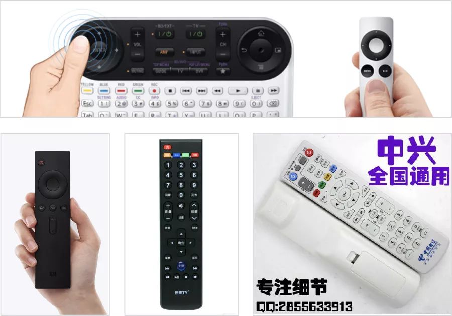當(dāng)我們用手指快速便捷地在手機(jī)屏幕上點(diǎn)擊或滑動(dòng)時(shí),主流電視大屏及應(yīng)用的操作還是:使用遙控器進(jìn)行操作。而市面上不同電視生產(chǎn)商生產(chǎn)的遙控器也有著不同的造型和按鍵數(shù)量,如圖1,分別展示了:蘋果、谷歌、小米、樂(lè)視和中興機(jī)頂盒的遙控器。