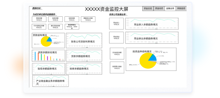 右側(cè)是客戶(hù)給的原型,只是把要展示的數(shù)據(jù)簡(jiǎn)單羅列了一下??紤]到大屏應(yīng)用場(chǎng)景,比如公司會(huì)議,集團(tuán)視察,行業(yè)參觀等,都是宏觀數(shù)據(jù)展示為主。所以在設(shè)計(jì)時(shí)不僅要考慮美觀性,更要考慮到整體的交互布局以及交互方式,確保關(guān)鍵數(shù)據(jù)和指標(biāo)在界面上以醒目的方式呈現(xiàn),以便用戶(hù)快速識(shí)別和理解。設(shè)計(jì)清晰簡(jiǎn)潔的布局,避免信息過(guò)載,使用戶(hù)能夠輕松找到需要的信息。