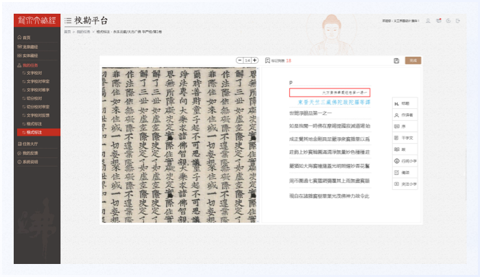 標記文字通常用于解釋、說明或強調(diào)藏經(jīng)中的某些部分,將其放在右側(cè)可以確保用戶在閱讀藏經(jīng)的同時,能夠輕松地獲取到這些額外的信息。這種布局方式也有助于減少用戶的認知負擔,提高閱讀效率。