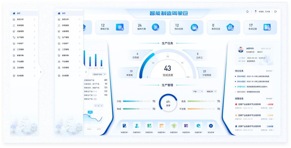 菜單導(dǎo)航區(qū)疊加工廠作業(yè)場景圖,突出軟件的主題同時豐富頁面。