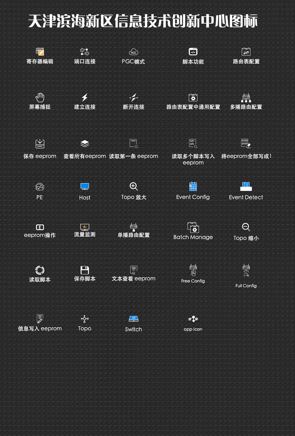 蘇野芯片高速串行rapidio芯片配置軟件是一款芯片功能監(jiān)測,配置及調(diào)試的軟件,其復(fù)雜程度高,專業(yè)性極強,需要反復(fù)與客戶溝通,理解背后含義才能設(shè)計出符合產(chǎn)品特征的圖標(biāo)。